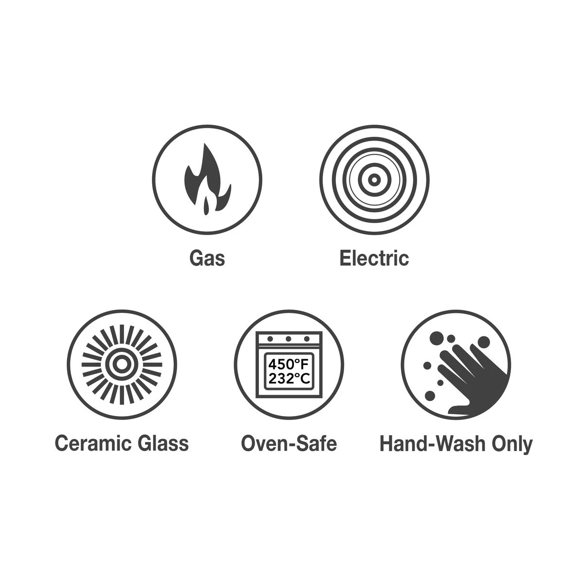 – Compatible with induction, gas, electric and ceramic glass cooktop