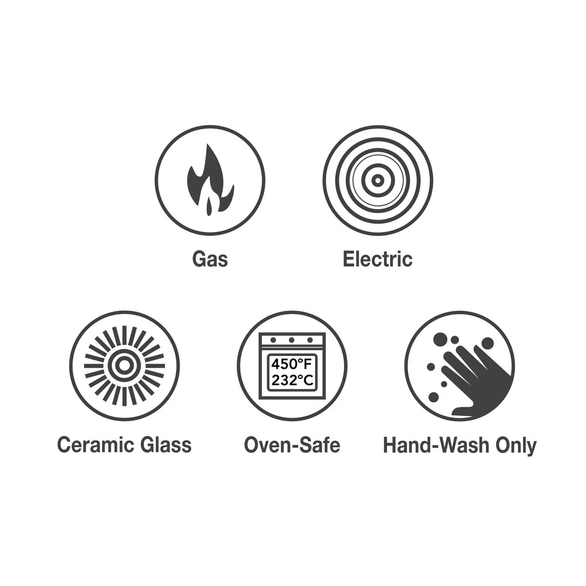– Compatible with gas, electric and ceramic glass cooktop