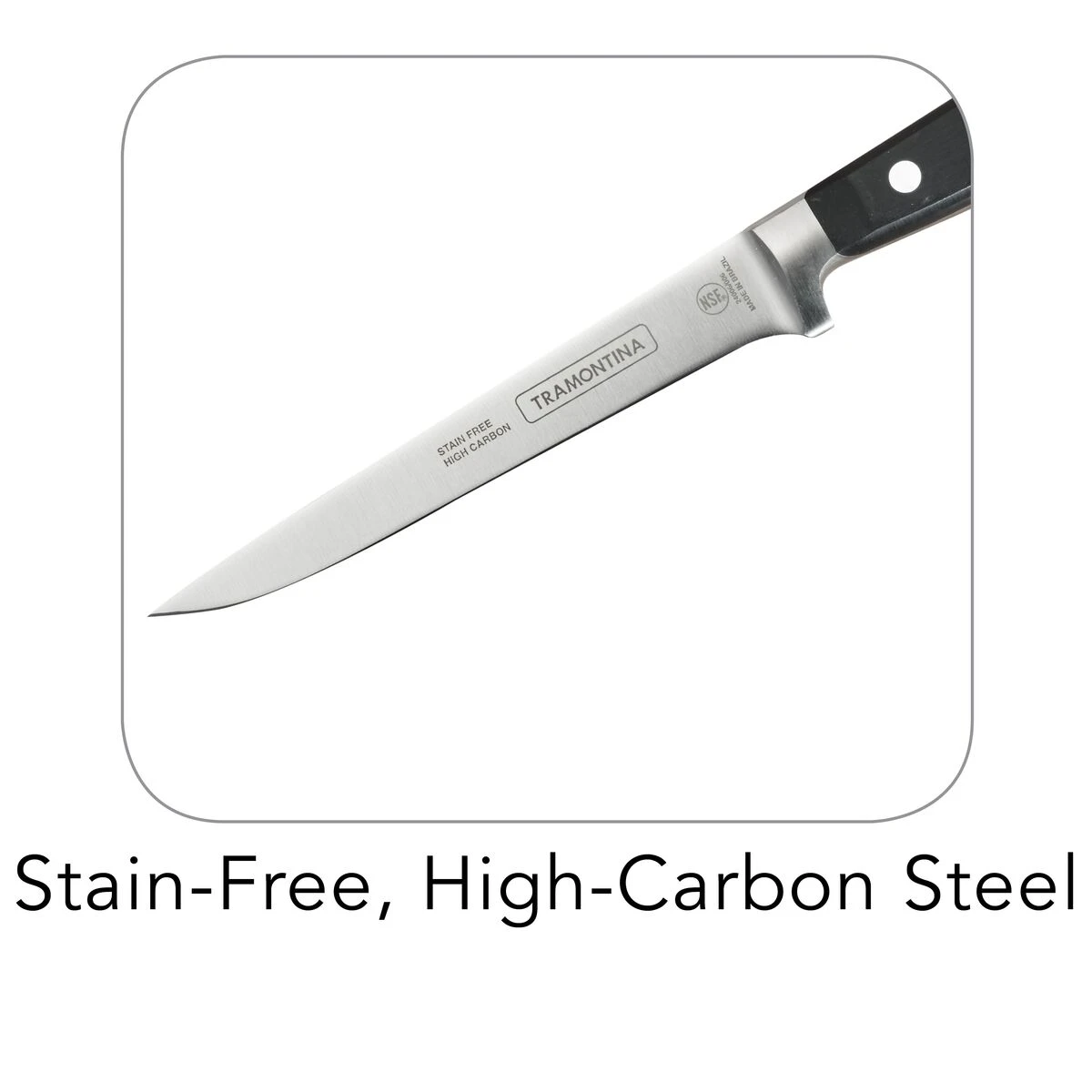 Reach for Tramontina”s 6 in Boning Knife to cut up or remove from bones fish, meat and poultry. The flexible blade is ideal for cutting around bones. You can also trust this one to make thin, precise cuts. Tramontina”s knives are forged from a single solid piece of premium high-carbon stainless steel for strength and durability.