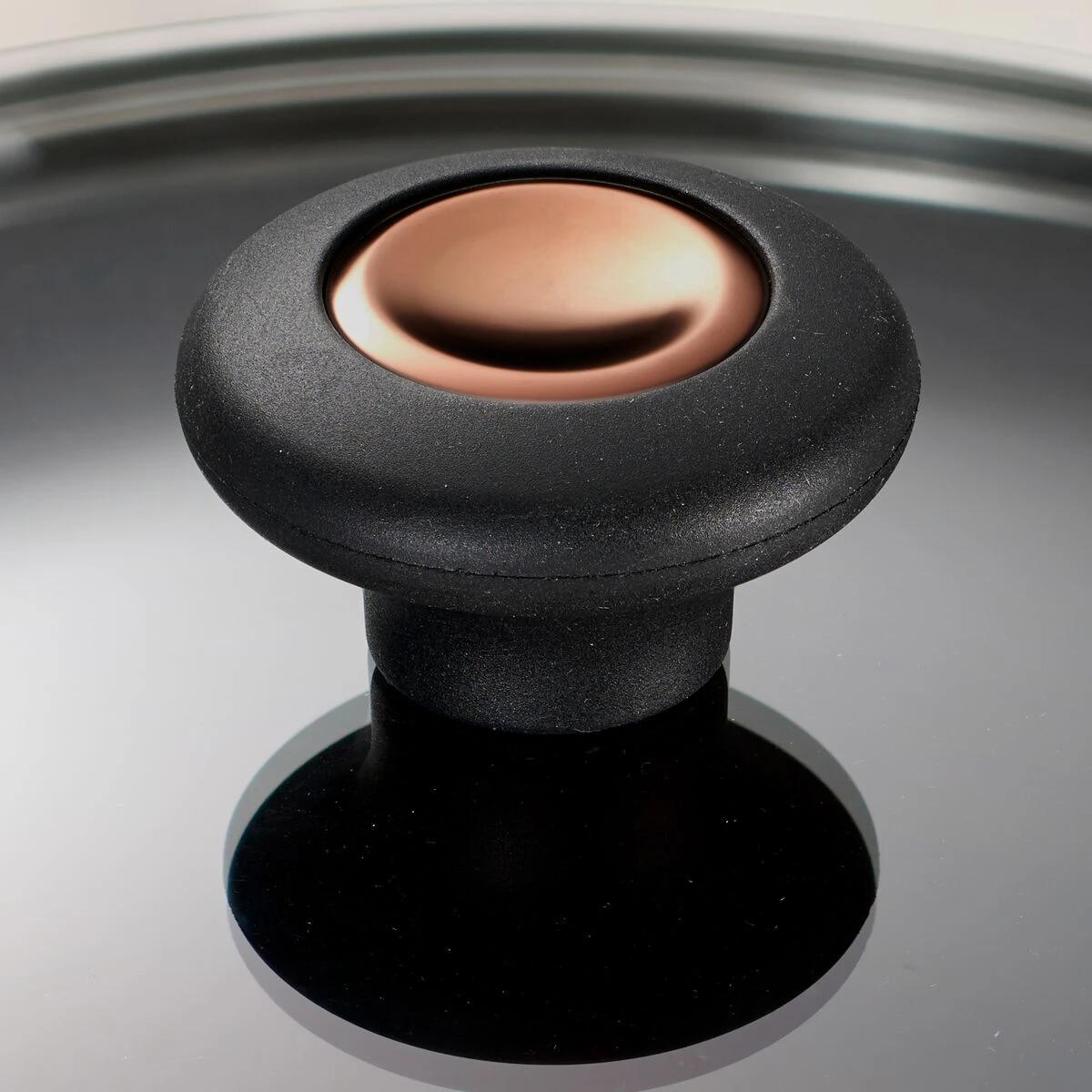 – Heat- and shatter-resistant tempered glass lid with stainless steel rim
